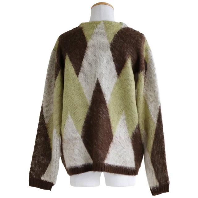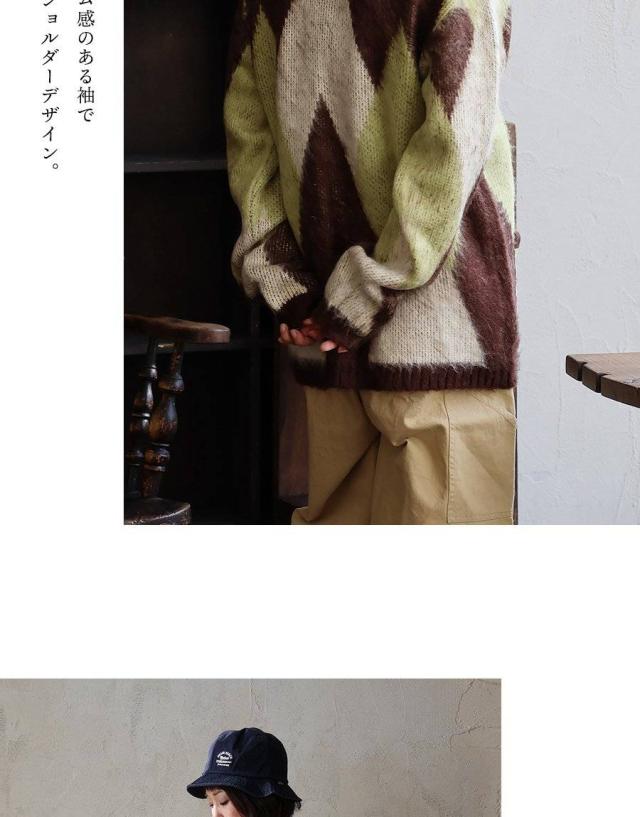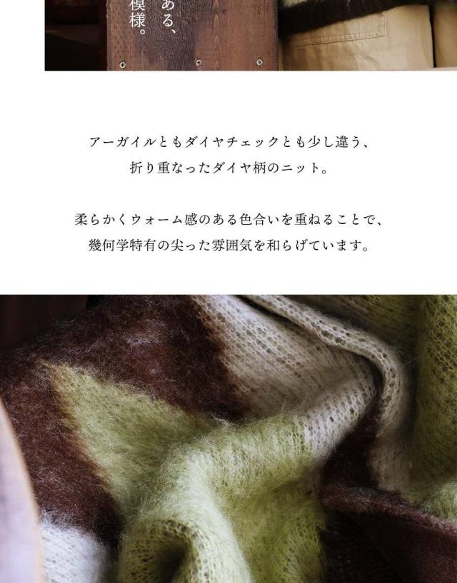・アーガイルともダイヤチェックとも少し違う、折り重なったダイヤ柄のニット。