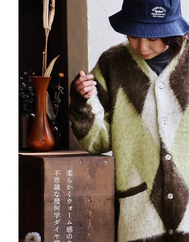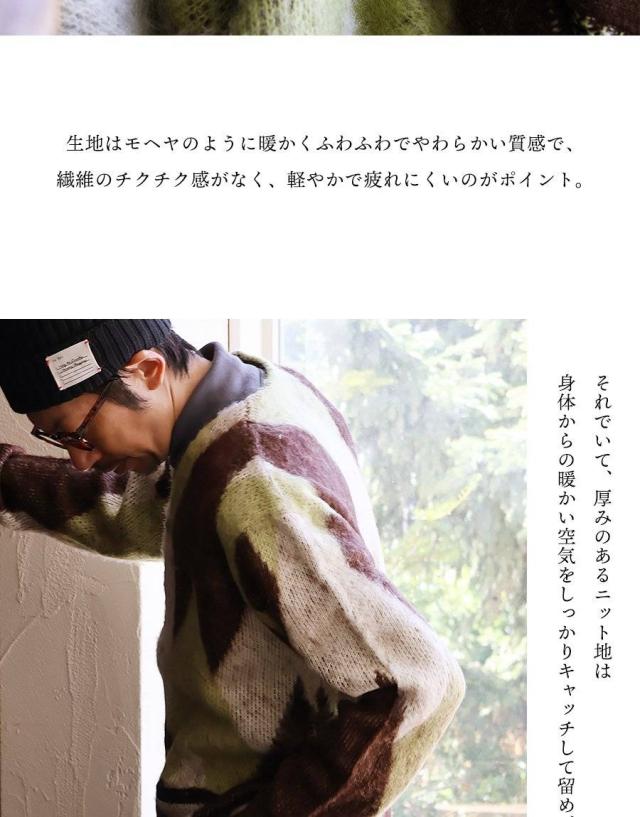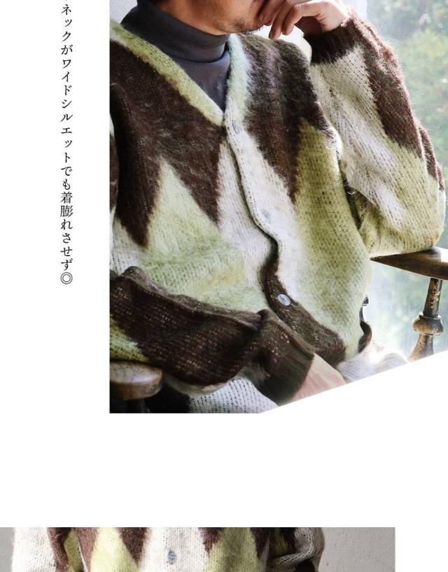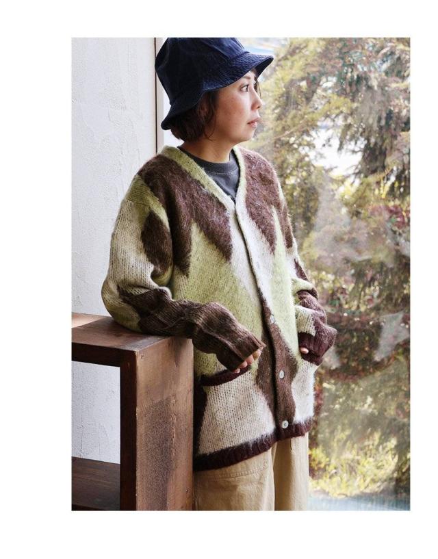 カーディガン カーデ Vネック 長袖 重ね着 メンズ レディース ダイヤモンド 総柄 ジャガード モヘアタッチ 伸縮性 起毛 暖かい アクリル100 軽い ゆったり 大きいサイズ 秋 冬 パティ