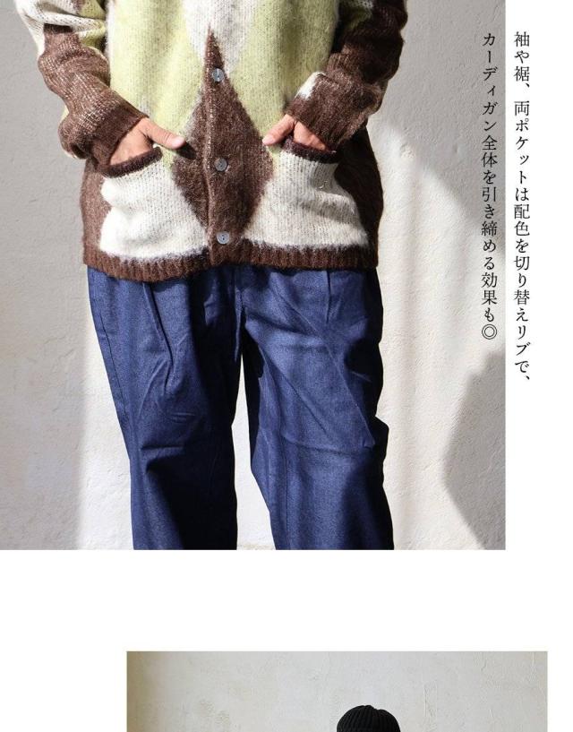 ・袖や裾、両ポケットは配色を切り替えリブで、カーディガン全体を引き締める効果も◎