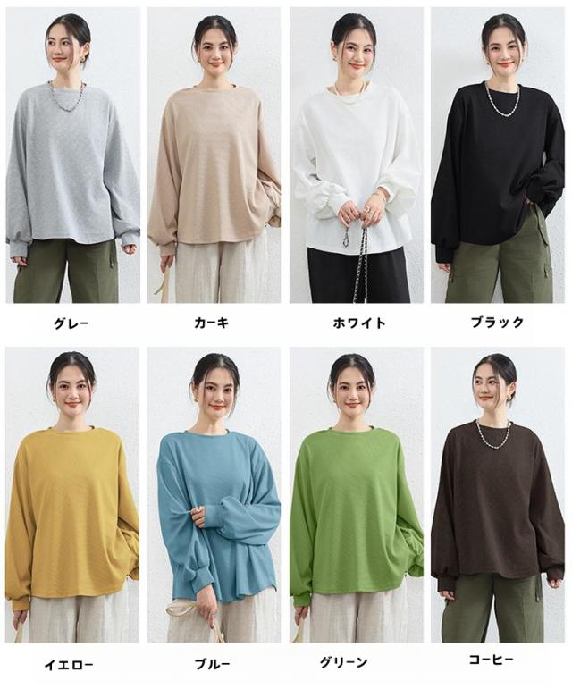 tシャツ 長袖 レディース 春秋 無地 ドルマンスリーブ レディース 長袖tシャツ uネック インナー 白 体型カバー ロンT カットソー ロンティー 重ね着 クルーネック インナー かわいい 長袖Tシャツ 仕事 きれいめ オフィス カジュアル