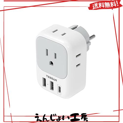 TESSAN 変換プラグ SEタイプ コンセント変換器 4個AC差込口 1USB-Cポート 2USB-Aポート付き 韓国変換プラグ ドイツ、フランス、オランダ