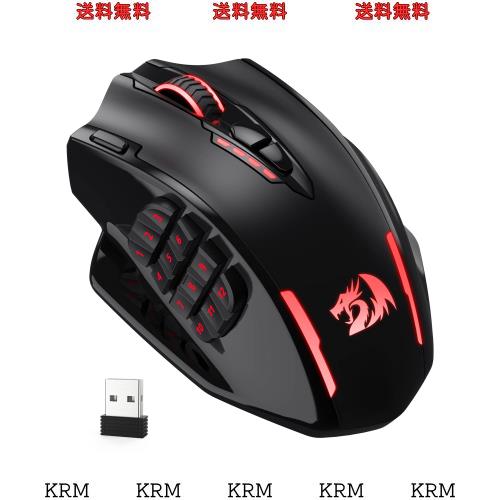 Redragon M913インパクトエリートワイヤレスゲーミングマウス、16000 DPI有線/無線RGBゲーマーマウス、16プログラマブルボタン、45時間バッテリーとプロ光学式センサー、12サイドボタンMMOマウス
