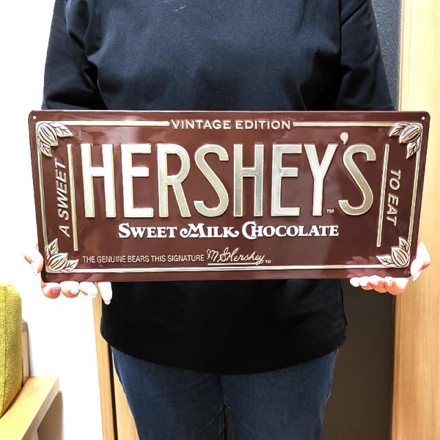 世界中で大人気のお菓子、HERSHEY'Sのブリキ看板です。