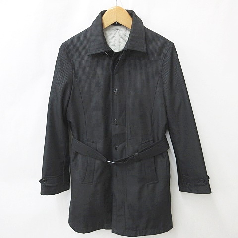【中古】ヨシユキコニシ フィッチェ コレツィオーネ FICCE ステンカラーコート ライナー 千鳥柄 黒 ブラック M メンズ