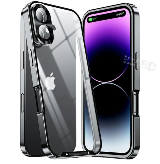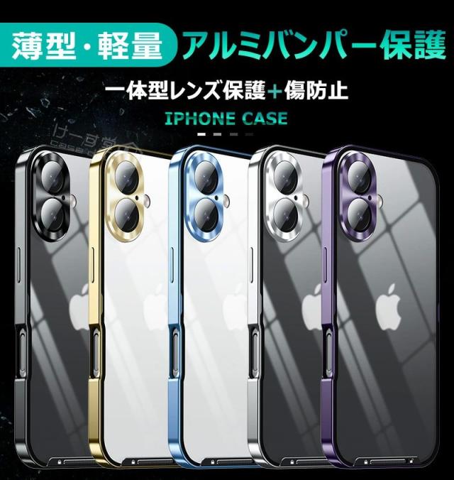 iphone16ケース アルミ合金製 iphone16proケース 一体型レンズ保護カバー アイホン16ケース アルミ バンパー クリア iPhone16 pro max カメラレンズ保護 アイホン16プロケース カメラフィルム アイホン16ケース おしゃれ 透明 カバー スマホケース 安全ロック付 金属ケース