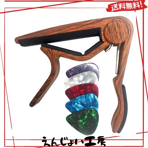 ◆商品名:WINGOクラシックフラットギターカポ クラシックナイロン弦ギター用(木目カラー)-ピック5枚