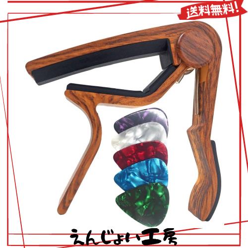 WINGOワンタッチギターカポタストエレキギター 、アコギ用カポ (木目カラー)-ピック5枚