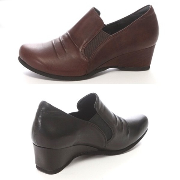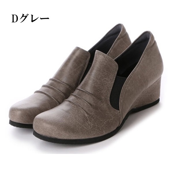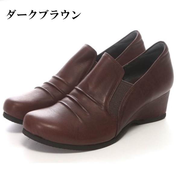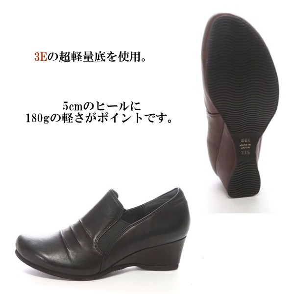 ソフトレザー楽ちん3Eウェッジスリッポンシューズ。