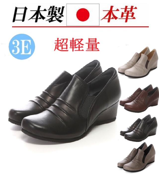 日本製 本革 ソフトレザー スリッポン レディース カジュアルシューズ サイドゴア レザー3e 外反母趾 コンフォートシューズ ウェッジヒール フラットシューズ カジュアル くしゅくしゅ おしゃれ 軽い 軽量 履きやすい 歩きやすい 痛くない