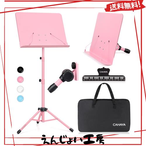 CAHAYA 譜面台 卓上 折りたたみ 2つの功能 楽譜クリップ付 収納バッグ付 読書台 筆記台 スペクトルスタンド 楽譜スタンド プロジェクタースタンド ノートパソコンスタンド メニュースタンド ラップトップスタンド 三脚 楽譜たて 楽譜スタンド 超頑丈 80~142cm 調節可能【新作】ピンク