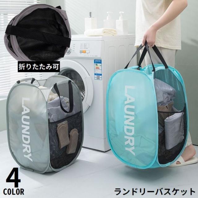 ランドリーバスケット 洗濯かご 洗濯物入れ メッシュ 大容量 折りたたみ コンパクト スリム収納 自立 省スペース 持ち手付き
