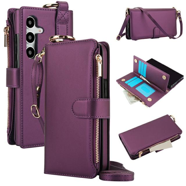 Galaxy S24 FE ケース スマホショルダー ショルダーストラップ カバー 手帳型 PUレザー 肩掛けストラップ付き ハンドストラップ付き スタンド機能 カード収納 ストラップ穴エレガント Samsung サムスン ギャラクシー S24 FE おすすめ