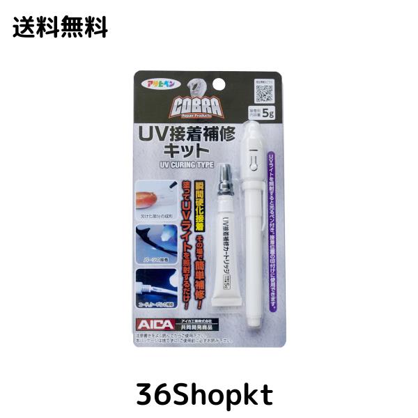 アサヒペン 液体プラスチック 接着剤 COBRA UV接着補修キット UVライト・接着剤5gセット CB-002 UVレジン 瞬間硬化接着 UVライト照射後約