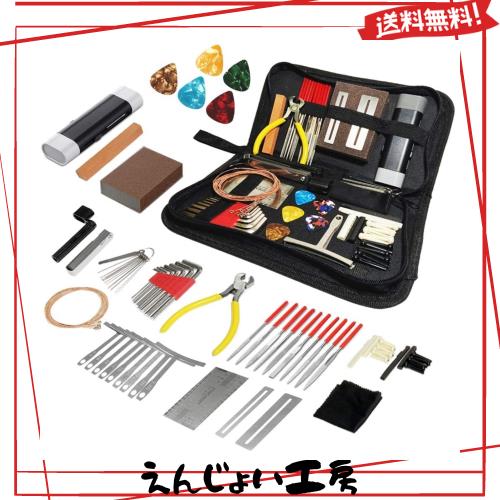 ギター修理ツールキット - ダイヤモンドファイルには、フラット、ラウンド、ハーフラウンドなどが含まれます。ギターだけではなく、ウクレレやベースなどにも使えます。 - ほとんどの種類のアコースティックギター、エレキギター、ベース用六角レンチセット。ブリッジの六角ネジをロックし、ギターネックを調整します。トラスロッドを効率的に調整するための様々なゲージに使用できます。 - ツールキット収納バッグ 収納が簡単 便利なキャリーケース、コンパクトなミュージシャンメンテナンス修理ツールキット、初心者やプロシーンに最適なギフト。