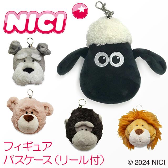 商品レビューで+5%|ニキ フィギュアパスケース ひつじのショーン シュナウザー ベア ゴリラ ライオン キャラクター リール付き 通学 定期入れ NICI nici-p-case1