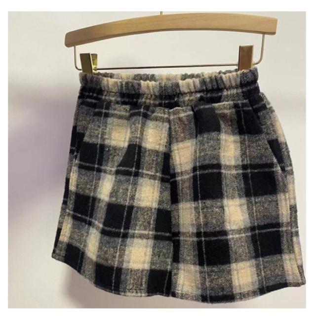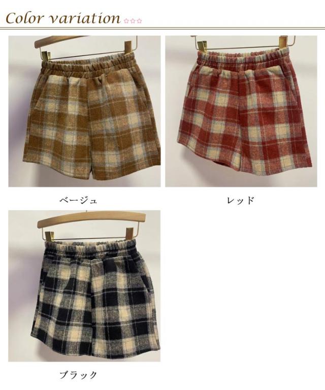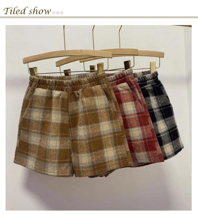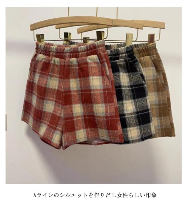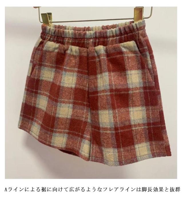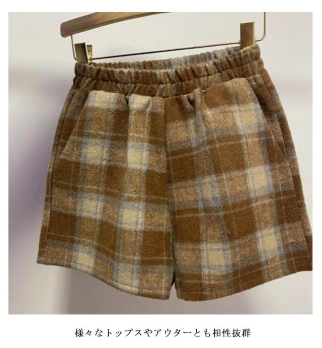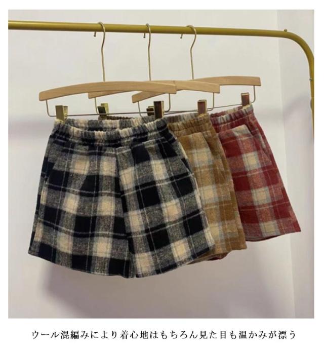 半ズボン ショートパンツ ウール混 チェック柄 フェイクウール ひざ丈 短パン ボトムス ウール混 ハーフパンツ ボトムス ホットパンツ ワイドパンツ レディースファッション レディース Aライン 無地 Aライン モダン シンプル 秋 冬 女性 婦人