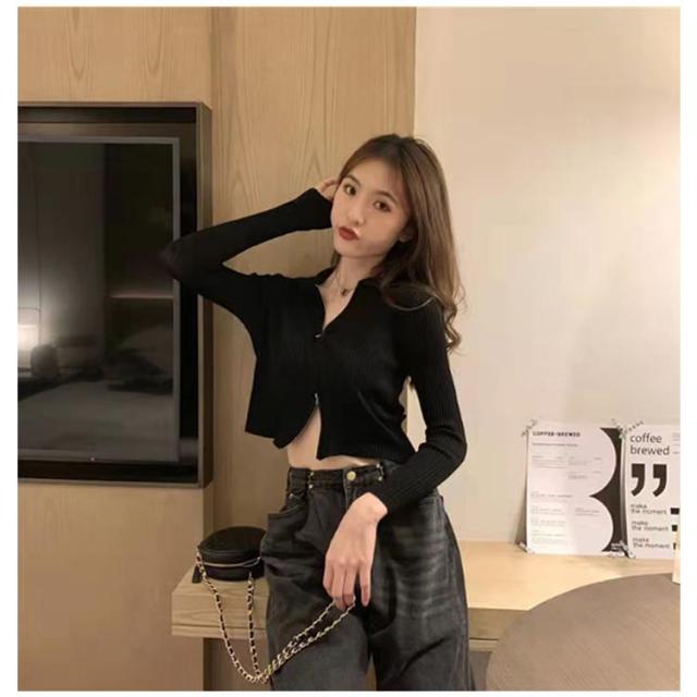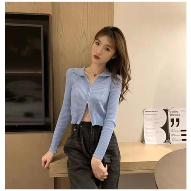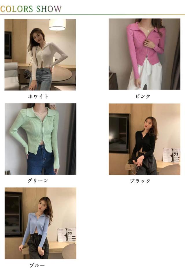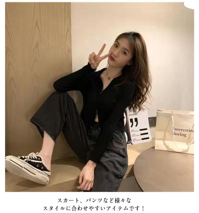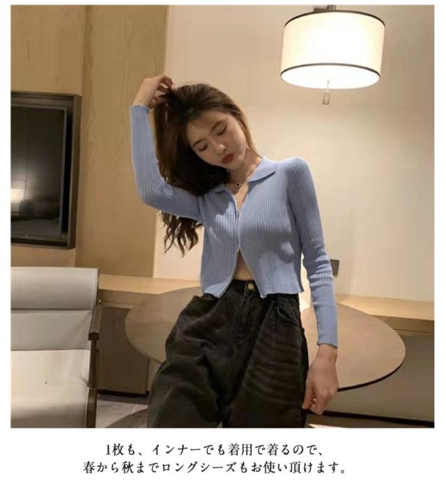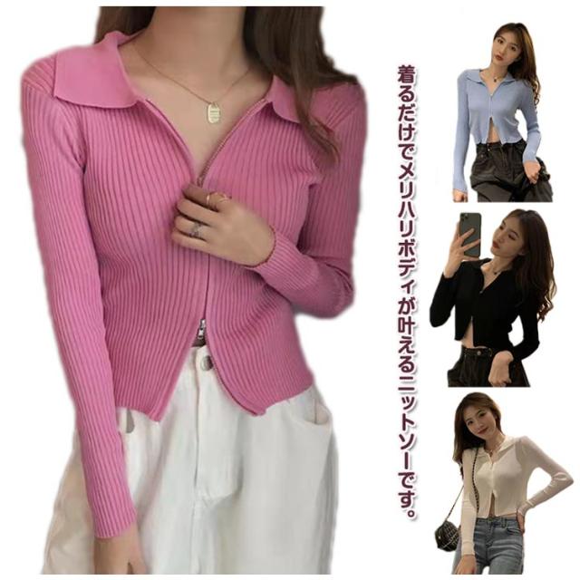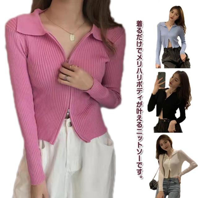 レディース カーディガン トップス ショート丈 スタンドカラー 立ち襟 ニットセーター 前開き お洒落 無地 ダブルジッパー ジップアップ セクシー レディース シンプル 着?せ 春秋 キレイめ