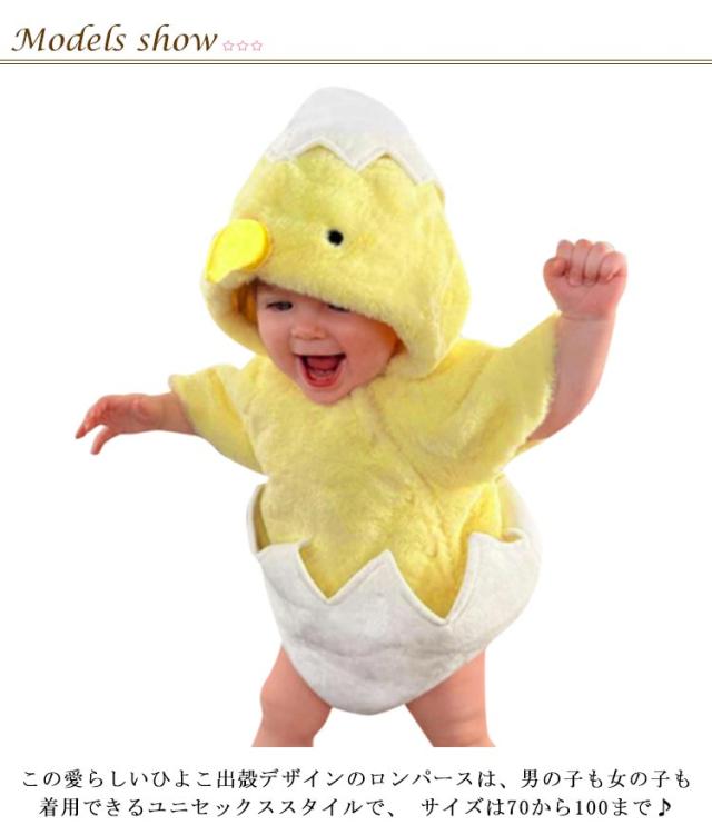 | ハロウィンの季節にぴったりなベビーロンパース。 この愛らしいひよこ出殻デザインのロンパースは、男の子も女の子も着用できるユニセックススタイルで、 サイズは70から100まで♪ ソフトで快適なボア生地で、空気が溜まりやすく、軽量で保温性に優れています。 ハロウィンのイベントや家族での記念写真撮影にもぴったり♪ ちょっとしたプレゼントや贈り物、プチギフトとしても喜ばれます。 | |