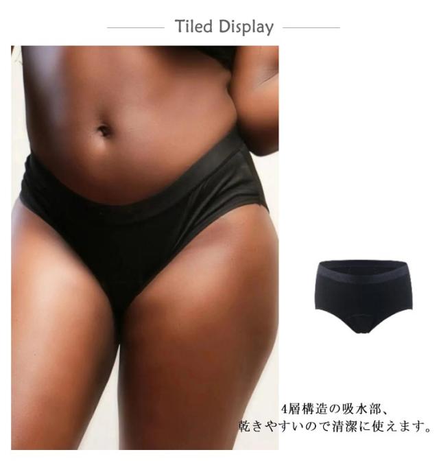 | 最大60cc吸水!安心感抜群!60ML 吸水ショーツ 4層構造の吸水部、乾きやすいので清潔に使えます。 吸水性・通気性抜群の竹繊維を採用し、汗ばむ季節もラクラク快適。 後ろまでしっかり吸収、繰り返し使えるから経済的。 いつ始まるから心配な生理前、出産後や更年期の尿漏れ、不正出血など様々なシーンで活躍できます。 | |