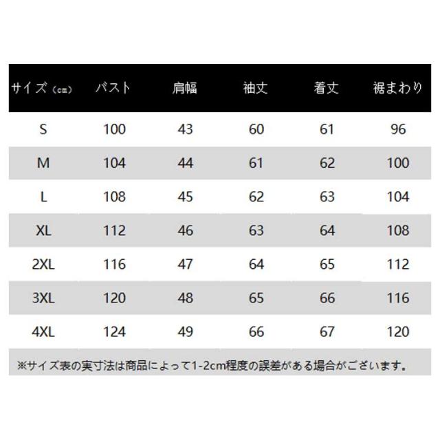 | サイズ | S M L XL 2XL 3XL 4XL |