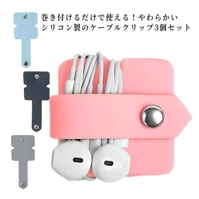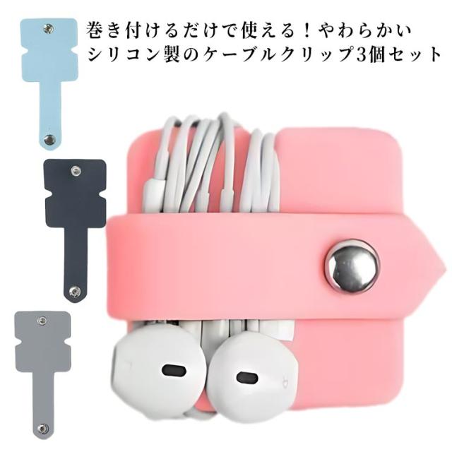ケーブルクリップ 3個セット シリコン製 ケーブルホルダー コードホルダー コードクリップ 巻き取り イヤホンケーブル イヤフォン USBケーブル コード収納 配線まとめ ケーブル整理 コンパクト 軽い 持ち運び シンプル 送料無料