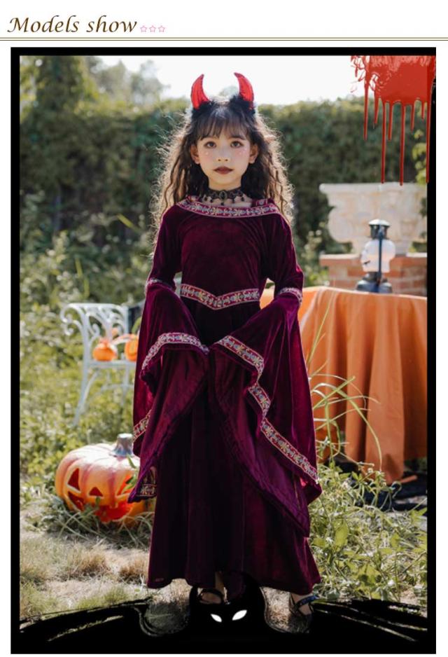 女の子 子供ドレス 子供 中世紀 中世ヨーロッパ貴族 仮装 ワンピース ハロウィン コスプレ 魔女 ホラー ハロウィーン 衣装 ガール こども 子供〜大人サイズ!ハロウィン 吸血鬼 宮廷装 学園祭 悪魔 仮装 Halloween コスプレ 学園祭 パーティー