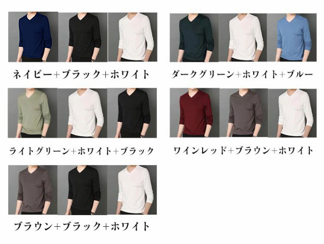 【3枚セット】 長袖 tシャツ メンズ vネック Tシャツ カットソー タイト フィット インナー ロンT ロングTシャツ おしゃれ 無地 シンプル 男性 トップス 肌着 重ね着 夏 秋 秋服 送料無料