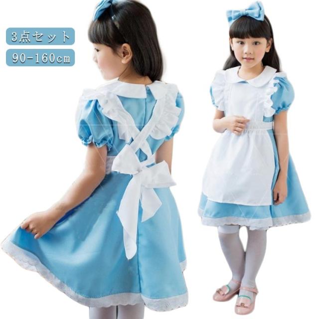 送料無料 ワンピース ハロウィン衣装 子供 魔女 エプロン キッズ 3点セット ハロウィン 衣装 ワンピース 魔女 カチューシャ コスプレ 女の子 子供用 コスチューム ステージ衣装 仮装 送料無料 ジュニア パーティー 可愛い