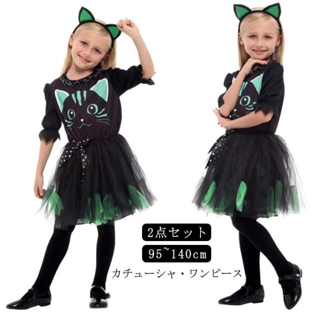 送料無料 2点セット ハロウィン 衣装 ハロウィン コスプレ 子ども キッズ 子供 ハロウィン コスプレ 衣装 変装 キッズ 女の子 黒猫服 コスチューム ハロウィン 猫 魔法使い 仮装 パーティー ハロウイン イベント 可愛い 小悪魔 魔女 ハット 魔女 コスプレ