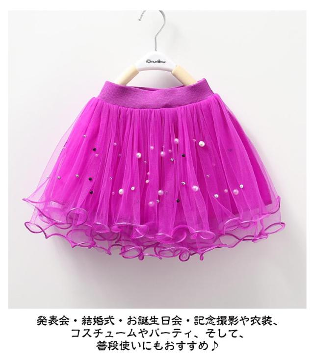キッズ スカート チュールスカート ボトムス 女の子 ミニスカート こども フレアスカート 子供服 パール 可愛い ふわふわ チュール ふんわり ボリューム感 ウエストゴム 春服 秋服 冬服 春秋冬 送料無料 発表会 演出服 イベント 送料無料