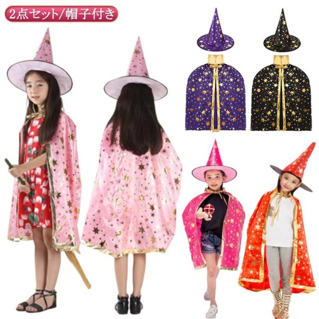 子供用 コスプレ衣装 パープル 大人用 2点セット/帽子付き ハロウィン ブラック マント リバーシブル レッド キッズ 紫 レディース 赤 カラーマント メンズ 魔女 イベント マジシャン 仮装 パーティ ハロウィン 学園祭 学芸会
