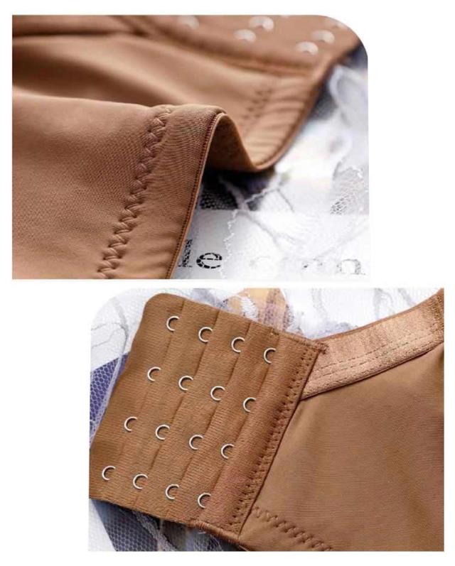 | いつでも快適!小さく見せるブラジャー バストを覆うレースがしっかりホールド。 バストトップの高さを目立たない様に工夫しました! サイドの脇高効果でハミ肉をキャッチ! 頼もしい4列4段ホック。しっかりとバストを支えます! バストトップの高さを目立たない様に工夫しました! サイドの脇高効果でハミ肉をキャッチ! U字のバックスタイルで肩への負担も軽減し、後ろ姿もすっきり! バスト全体をすっぽり覆い、広い範囲でホールドするので、下垂の原因となるユレも抑えます。 バストサイドには、ハリのある薄く伸びない素材を使用して、流れやすいバストをせき止め、脇のバストボリュームを押さえます。 フロントや脇だけでなく、背中までしっかりホールド。後姿もスッキリ美人に! いつでも超快適! | |