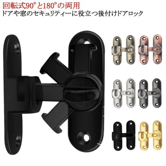回転式 後付け 後付け 鍵玄関ドア ドアロック 兼用 90度/180度 窓 ロックドア 室内ドア 鍵 鍵 ドアロック ドアバックル 亜鉛合金 ドア留め金ロック フリップラッチロック 引き戸用鍵 スライドロック 窓ロック とびらロック 部屋