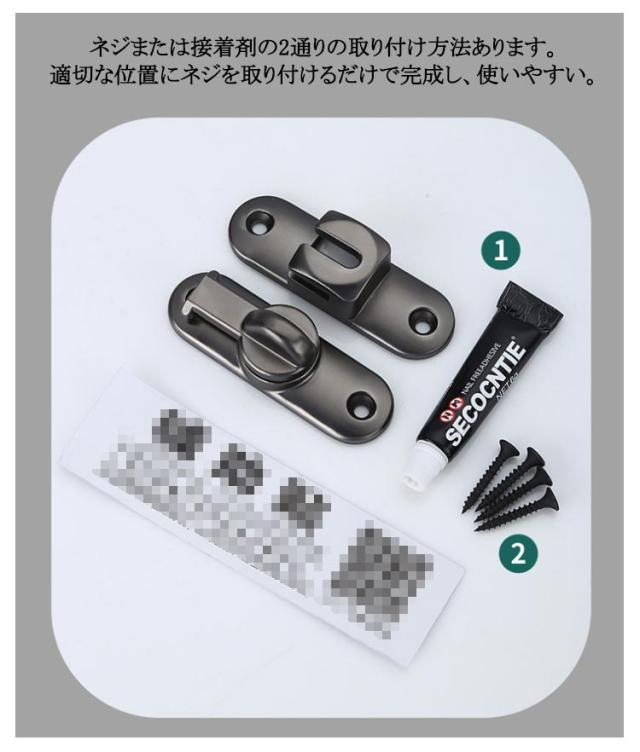 | 回転式90°と180°の両用 ドアや窓のセキュリティーに役立つ後付けドアロック 亜鉛合金のドアバックルは、丈夫で防錆性に優れ、耐久性に優れています。 スムーズに回転でき、ワンタッチに簡単に開閉できます。 90度も180度も取り付けられるから、開き戸も引き戸も様々なドアに対応できます。 ネジまたは接着剤の2通りの取り付け方法あります。適切な位置にネジを取り付けるだけで完成し、使いやすい。 子供ケガ防止だけでなく、部屋の外に出ていかないようにしたり、様々な危険を防止できます。 簡単施錠でスライドドアの防犯対策ができます。猫の脱走防止用としてもお使いいただけます。 | |