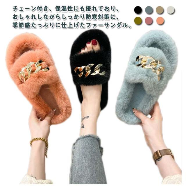 チェーン付き 冬 もこもこ レディース ファーサンダル フェイクファーサンダル チェーン付き スリッパ 暖かい 痛くない 大人 韓国ファッション 歩きやすい