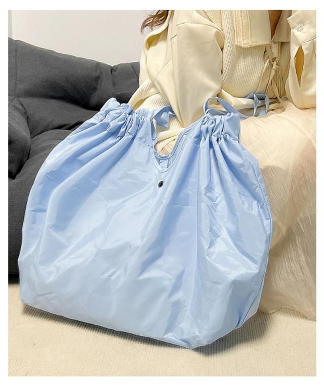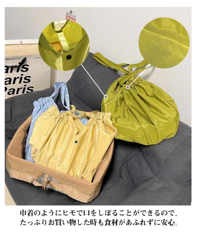 | 買い物かごにぴったり入る!詰め替え作業が不要の便利なエコバッグ。 たっぷり入り、スタイリッシュなデザインなのでお買い物に大活躍! 巾着のようにヒモで口をしぼることができるので、たっぷりお買い物した時も食材があふれずに安心。 使わない時にはくるっとまるめてゴムバンドで止めれば、コンパクトサイズに!通勤用のカバンにも入れておける♪ レディース・メンズが持てるシンプルなデザイン。コンパクトに持ち運べ、とても便利です。 | |