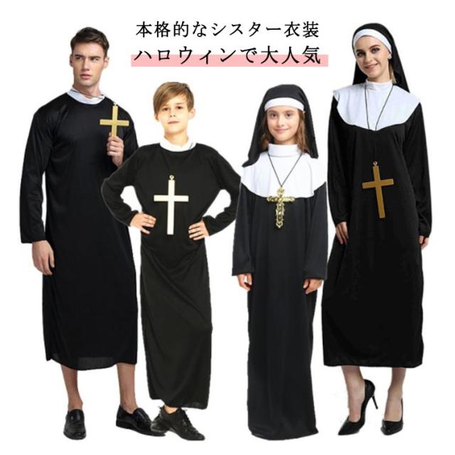 コスプレ衣装 子供用 シスター服 ハロウィン 大人用 修道女 長袖 ハロウィン衣装 修道服 頭巾 大人用 シスターコスチューム 女性 巫女 大人 ワンピース 可愛い 大きいサイズ