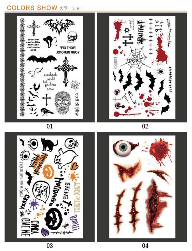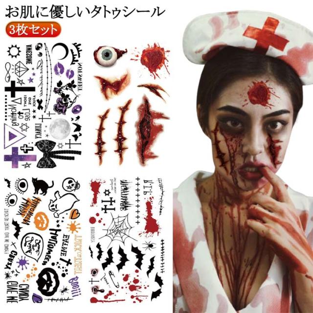 3枚セット 送料無料 仮装 ハロウィン コスプレ 衣装 タトゥー 子供 ステッカー 大人 傷メイク 血 送料無料 かぼちゃ クモ ボディ フェイス イベント タトゥー ハロウィン グッズ パーティー イベント ハロウィン用品