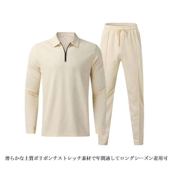| デザイン性と機能性をもつポロシャツとパンツの上下セットアップ ウエストゴム仕様で伸縮し穿きやすく 滑らかな上質ポリポンチストレッチ素材で年間通してロングシーズン着用可 カジュアルコーデはもちろん、あわせるアイテムによってはきれい目にも仕上がるメンズジャージは、使い勝手が良く重宝するアイテムです | |