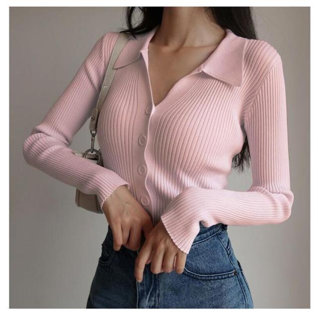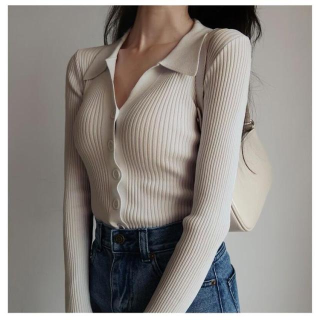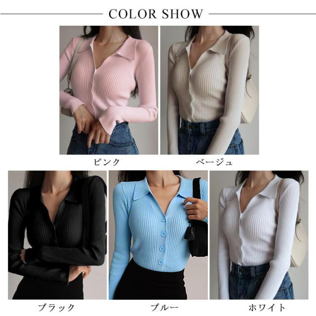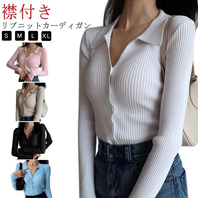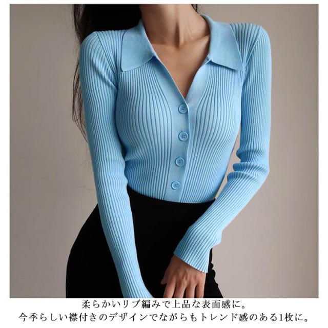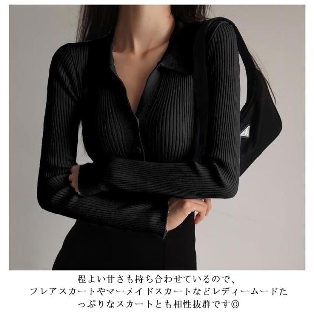 襟付きニットトップス プルオーバー ニット セーター ポロニット レディース ニットトップス タイト 細身 vネック 襟付き リブ ニット 長袖 ニットカーディガンン 羽織 リブ編み リブニット オフィス 通勤 かわいい おしゃれ トレンド 着回し