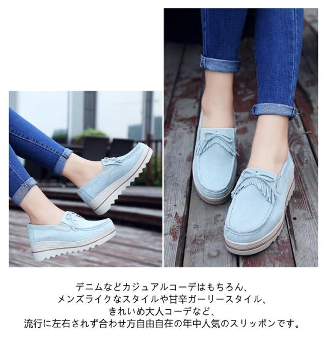 | 全7色 3タイプ 22.5-26.5cm レザー厚底スリッポン フリンジの飾りが目を惹くレザースリッポン! なデザインで使いやすく、カジュアルなスリッポンもレザー仕様で高級感のある大人顔に。 足当たりの良いソフトな天然皮革を使用しており、厚めのソールで脚長、美脚効果はもちろん、 フラットヒールで安定性にも優れております。 デニムなどカジュアルコーデはもちろん、メンズライクなスタイルや甘辛ガーリースタイル、 きれいめ大人コーデなど、流行に左右されず合わせ方自由自在の年中人気のスリッポンです。 | |