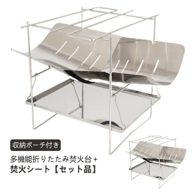 焚火台 折りたたみ 灰受け 焚き火台セット バーベキューコンロ 焚き火台 収納袋付き キャンプ コンパクト 焚き火台セット 軽量 携帯 ステンレス アウトドア 焚き火シート付 ソロ 焼き網 ファイアグリル 組立簡単 持ち運び ソロキャンプ 初心者向け