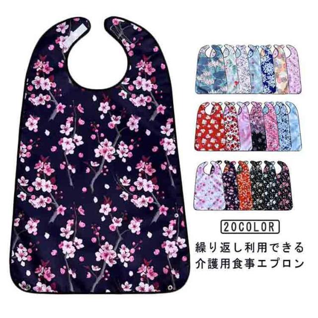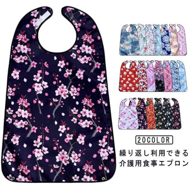 介護用エプロン 花柄 食事用エプロン 介護用品 食事用 介護 エプロン 総柄 おしゃれ シニア 便利グッズ 汚れ防止 マジックテープ サイズ調整 介護用食事エプロン 食べこぼし 飲みこぼし 汚れ 防止 撥水 防水 可愛い 送料無料