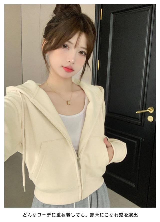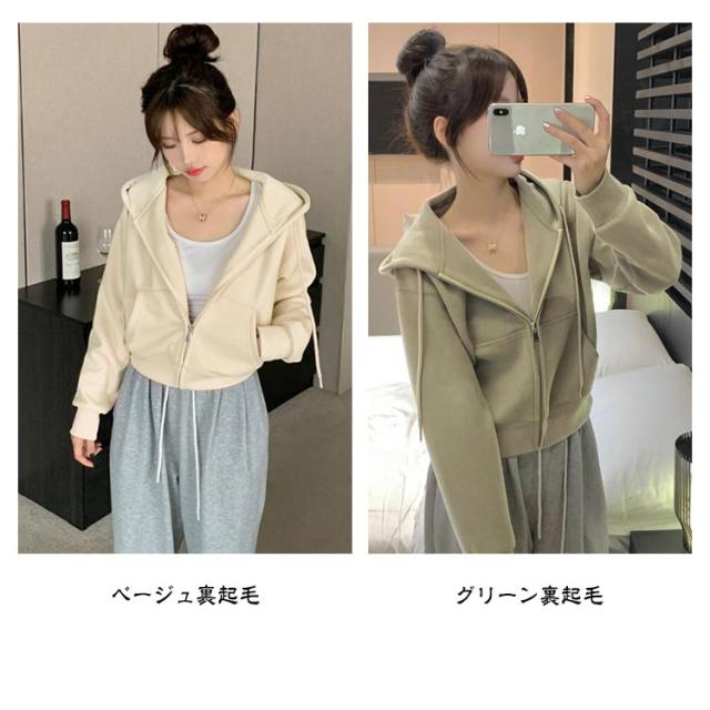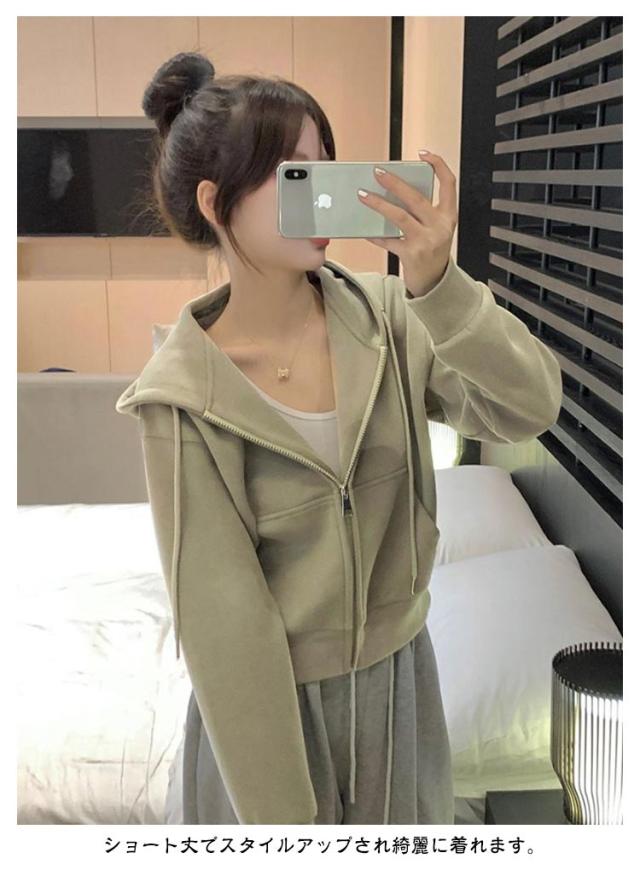 レディース ショートパーカー パーカー トップス 無地 フード パーカー 羽織 ショート 秋 裏起毛 ジップパーカー ショート丈 アウター 長袖 ジップアップ ジッパー 大人可愛い 女性 フーディ ライトアウター 羽織り