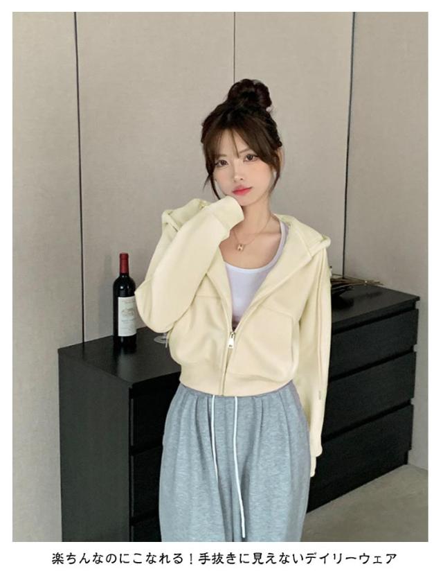| 【2color】【ショート丈 ジップパーカー】【S M L XL】 どんなコーデに重ね着しても、簡単にこなれ感を演出 ショート丈なので、今っぽいシルエットで着られます。 楽ちんなのにこなれる!手抜きに見えないデイリーウェア ショート丈でスタイルアップされ綺麗に着れます。 ハイウエストのパンツとも相性抜群! レイヤードコーデもしやすく肌寒い季節に最適♪ | |