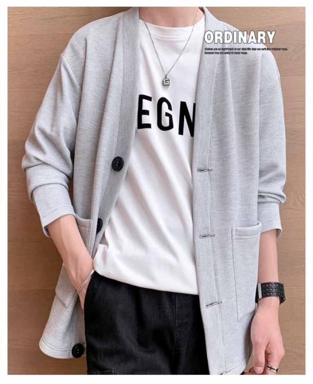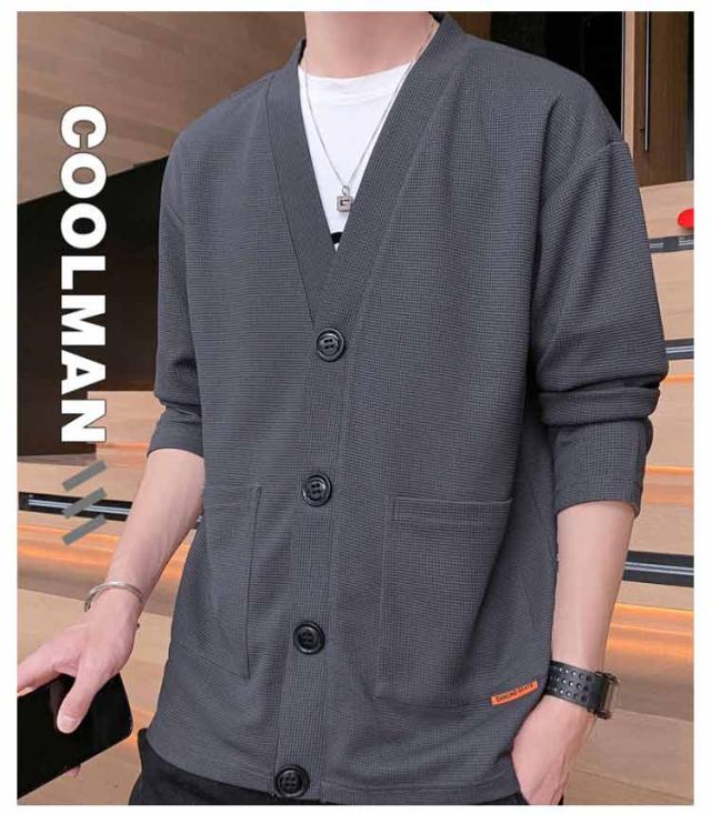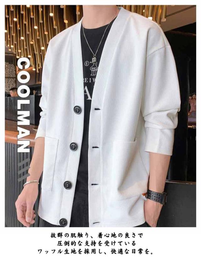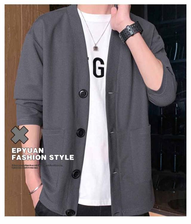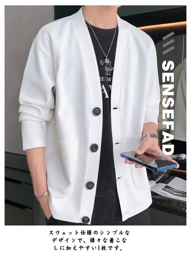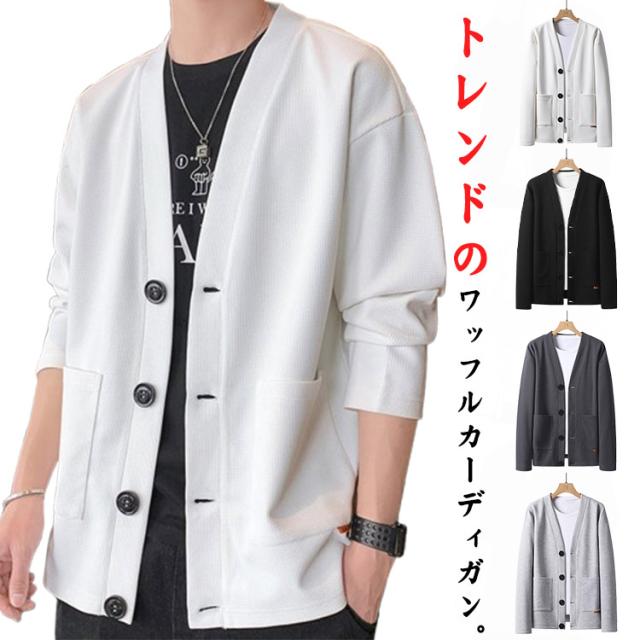 羽織り 秋 ワッフルカーディガン 無地 Vネック カーディガン アウター スウェットカーディガン カーディガン メンズ ビジネス 冬 長袖 秋服 秋物 ライトアウター 前開き ジャケット ユニセックス 通勤 通学 20代 30代 40代