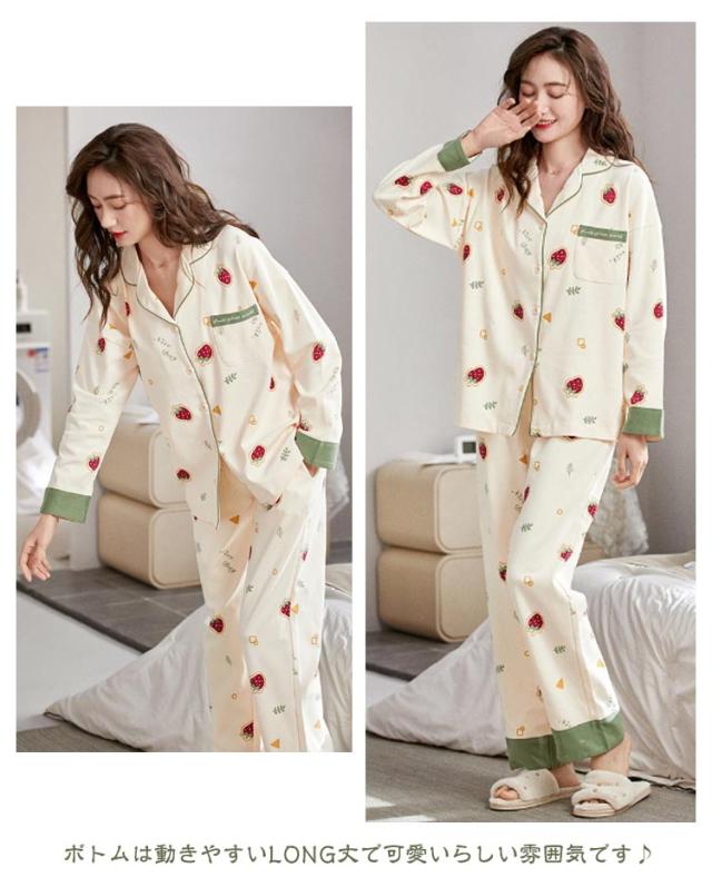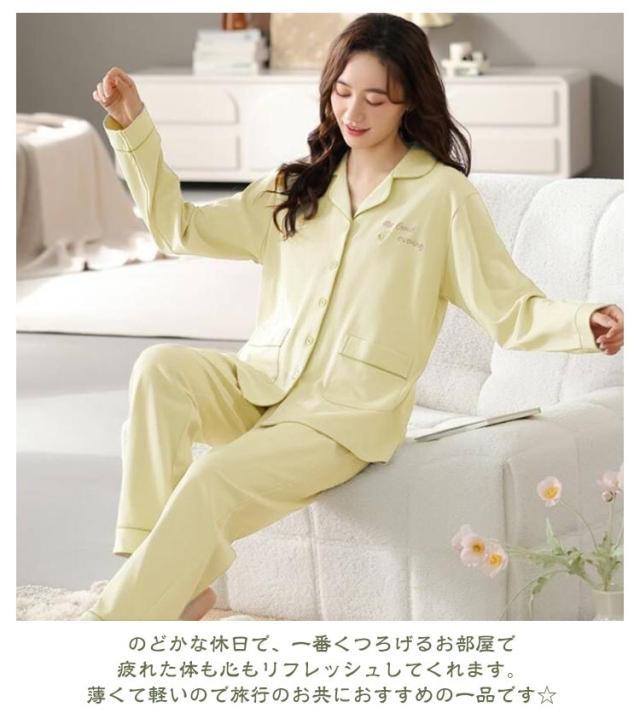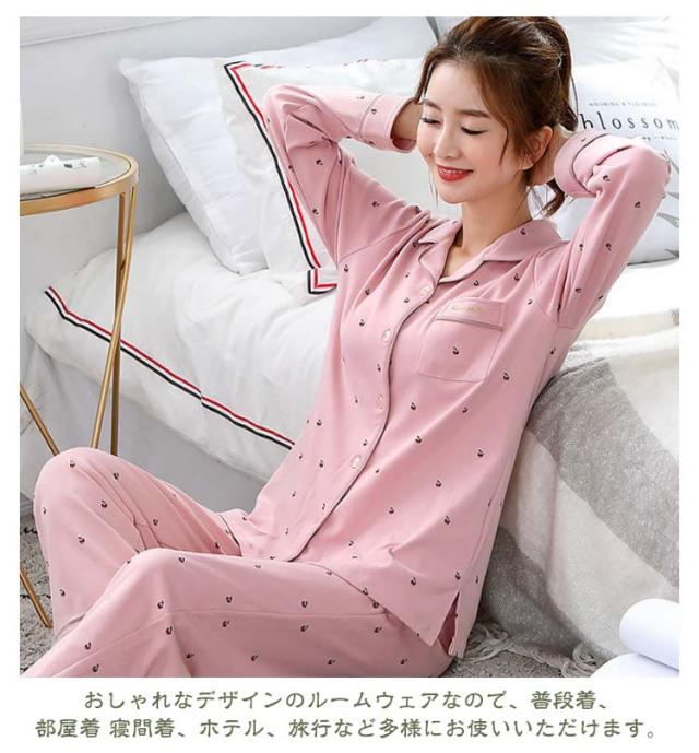 | 全20種類!春秋冬に大活躍パジャマです! とろみ感のある肌触りの良い綿素材を使用しました☆ワンランク上の大人の女性になれそうです♪♪ ボトムは動きやすいLONG丈で可愛いらしい雰囲気です♪ のどかな休日で、一番くつろげるお部屋で疲れた体も心もリフレッシュしてくれます。 薄くて軽いので旅行のお共におすすめの一品です☆ ゆったりシルエットで体型カバーもばっちり。 おしゃれなデザインのルームウェアなので、普段着、部屋着 寝間着、ホテル、旅行など多様にお使いいただけます。 | |