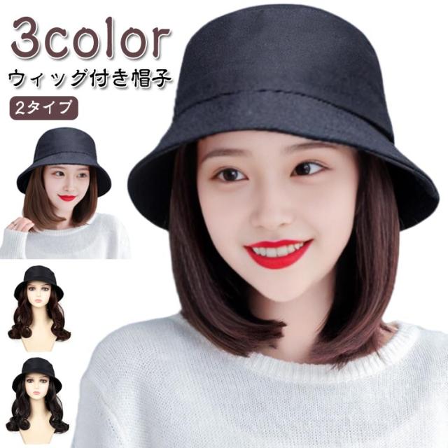 ウィッグ付き帽子 ショート 医療用 医療用ウィッグ ストレート/カール 毛付き帽子 帽子付きウィッグ バケットハット かつら付き キャップ ボブ ケア帽子 可愛い 髪付き レディース ウィッグ付き帽子 帽子 ナチュラル つけ毛