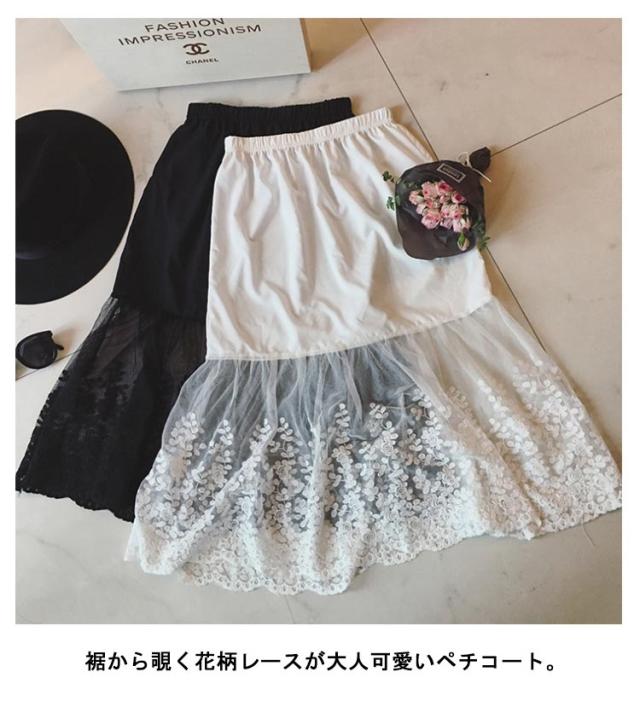 ペチコート スカート スカートの下に履く ペチコート インナー 裾 透け防止 膝丈 膝下丈 裾レース ドレス下着 ロングペチコート ペチスカート 見せ レディース 可愛い レースペチコート 裾ふんわり チュール ドレスインナー チラ見せ 下着