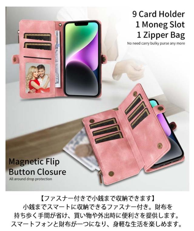 | 【お揃いの落下防止用ストラップ付き】お揃いの落下防止用ストラップが付いており、大切なスマートフォンをいつでも安全に保つことができます。落としてしまう心配がなく、忙しい日常でも安心してお使いいただけます。 【ファスナー付きで小銭まで収納できます】小銭までスマートに収納できるファスナー付き。財布を持ち歩く手間が省け、買い物や外出時に便利さを提供します。スマートフォンと財布が一つになり、身軽な生活を楽しめます。 【スタンド機能付きで試聴が楽々】スタンド機能も搭載されており、動画視聴や音楽試聴が楽々。手を自由に使えるため、エンターテインメントを満喫するのに最適です。どこでも手軽にスマートフォンの魅力を堪能できます。 ウォレット型多機能のスマホケース!安全性、便利さ、デザイン、エンターテインメント性を兼ね備え、スマートフォンをさらに魅力的にします。 | |